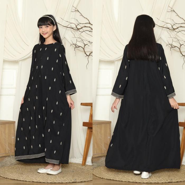 Wiriwiri Series Raya Black Dubai Sarimbit Abaya & One Set Bordir Ayah Ibu & Anak (Premium) - Abaya Ibu, S