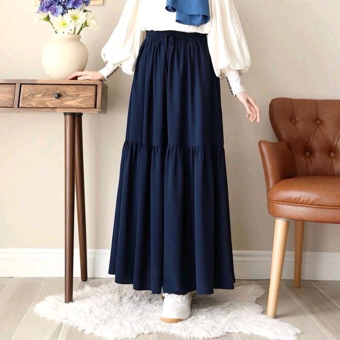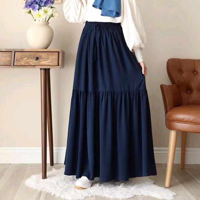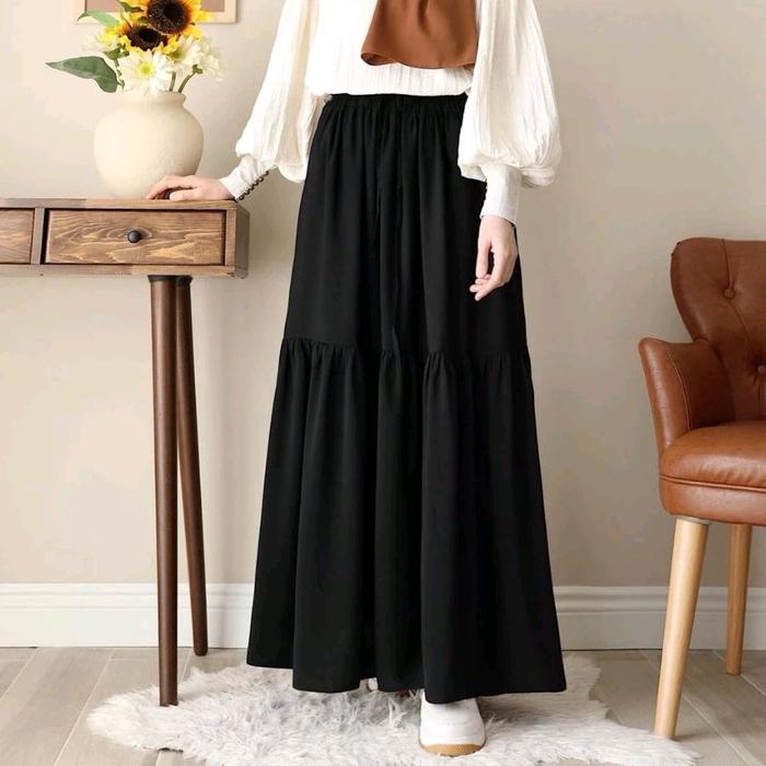 Rok Hitam Bawahan Muslimah Skirt Bahan Crinkle Terbaru Wanita Panjang Putih - Hitam