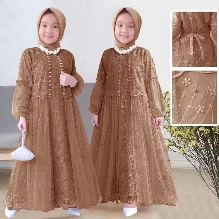 Kid Rafika (3-16Tahun) Gamis Anak Dress Anak Gaun Anak Gamis Pesta Kondangan Lebaran Muslim - Emerald, S (3-4Thn)