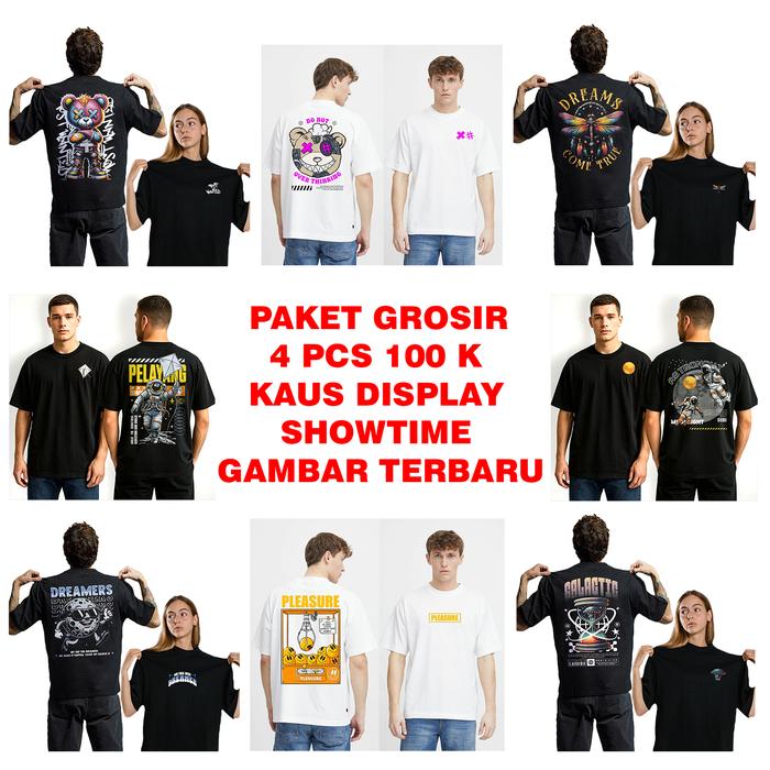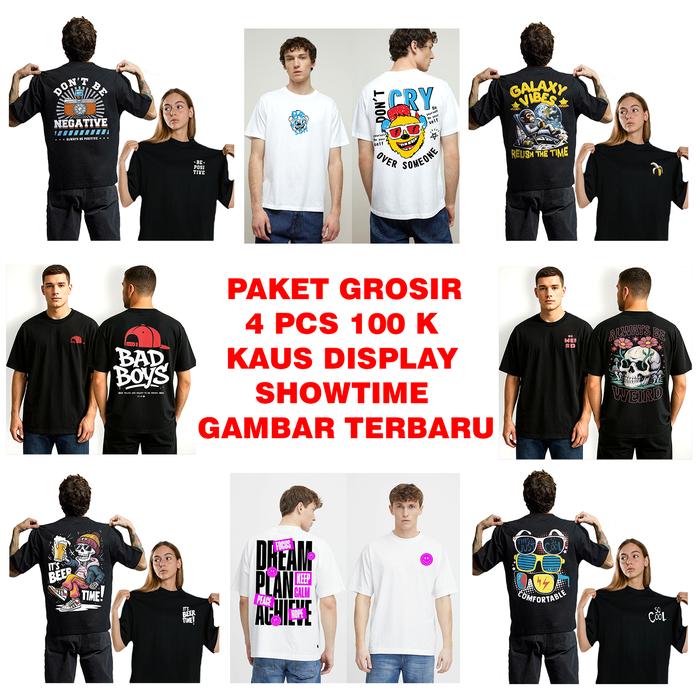4 Pcs 100 Ribu Kaos Tshirt Atasan Distro Pria Terbaru Lengan Pendek Varian Motif Hitam Sablon Tulisan Bergambar Pakaian