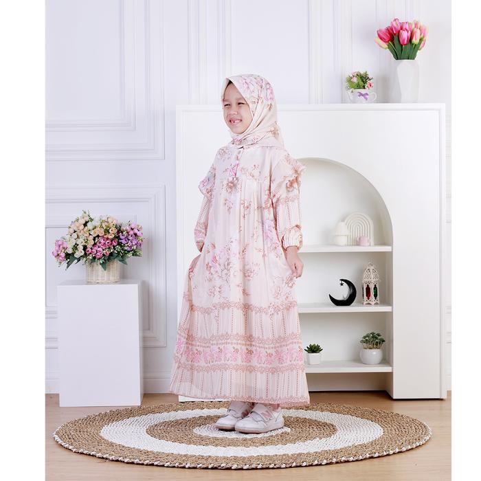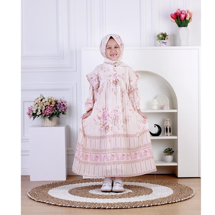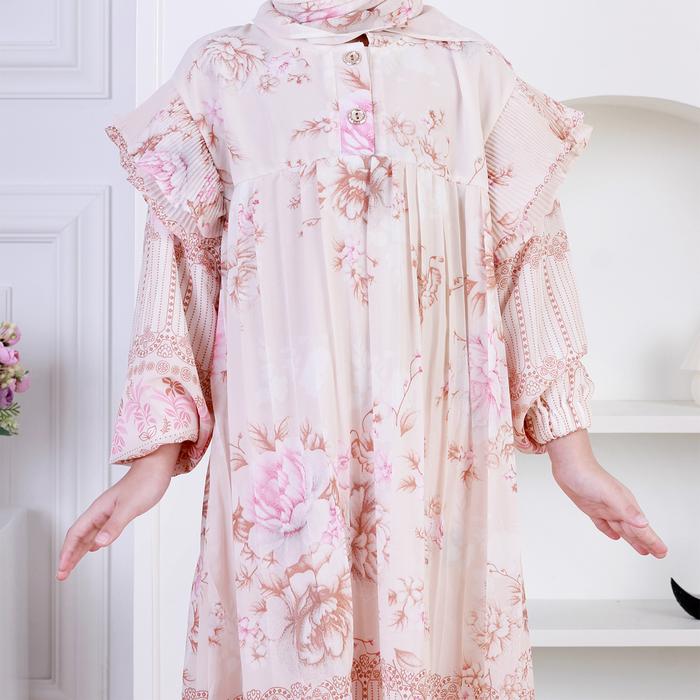 Dungdungkids Gamis Anak Vanesha Ceruty Motif Bunga Plisket Free Jilbab Segi Empat 5 - 11 Tahun - Tosca, S (5 - 6 Tahun)