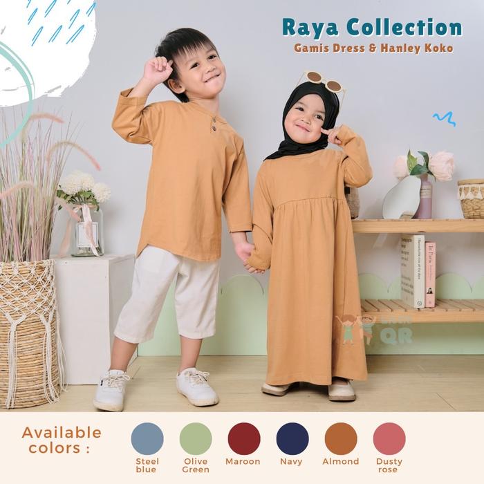 Gamis Dress Anak Dan Kaos Koko Hanley Anak Bahan Combed - 0 Sd 14 Tahun Katun Muslim Panjang Lembut - Navy , S - Gamis