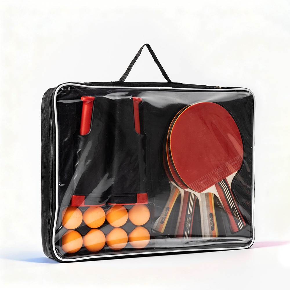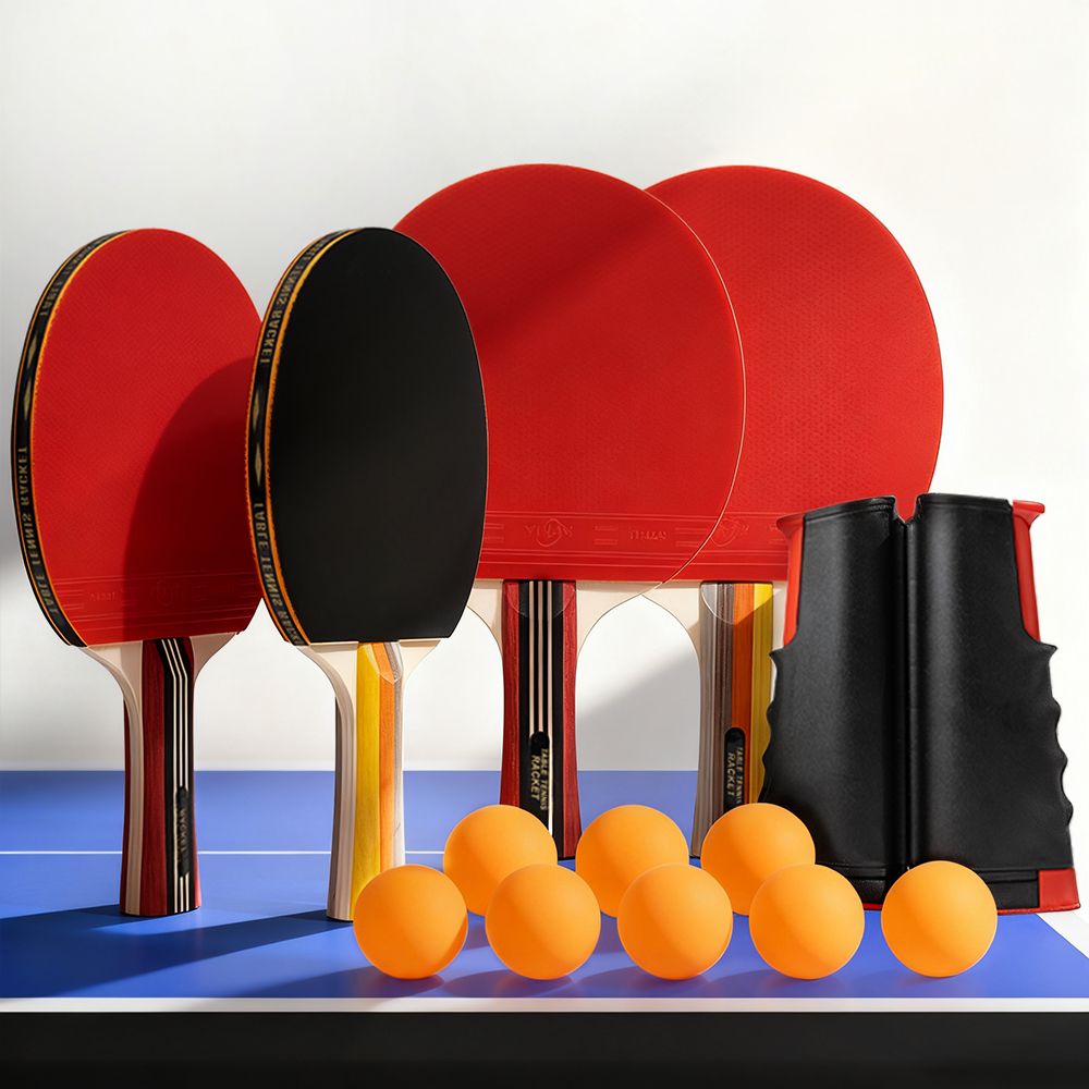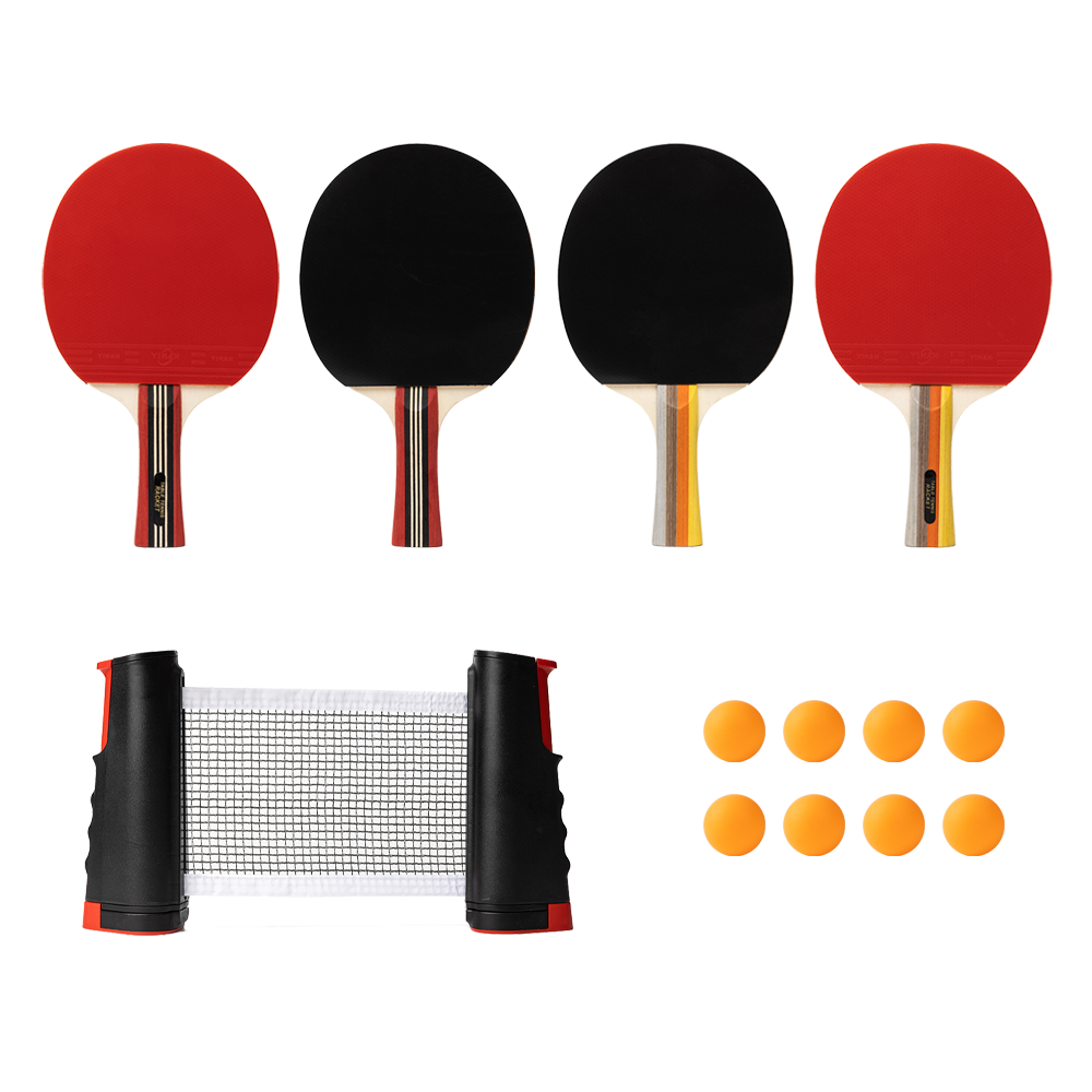 Set Lengkap Raket Pingpong 4 Bet + 8 Bola + Net Portabel + Tas Besar – Kayu 5 Lsan, Karet Premium, Cocok untuk Keluarga