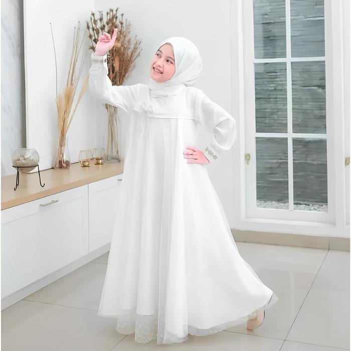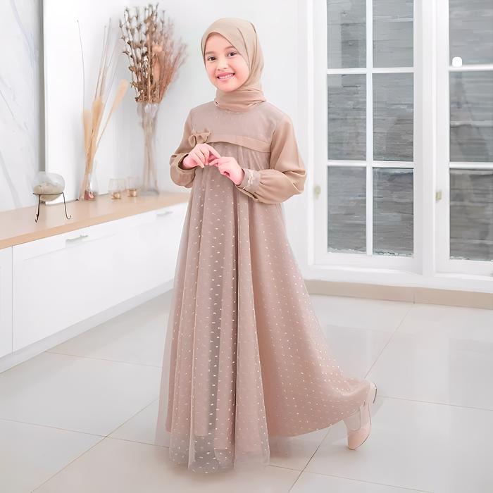 Gamis Anak Model Terbaru 2026 Crinkle Airflow Mix Tile Dot Usia 6-13 Tahun Baju Dress Muslim Brukat Mewah Gaun Pesta Kon