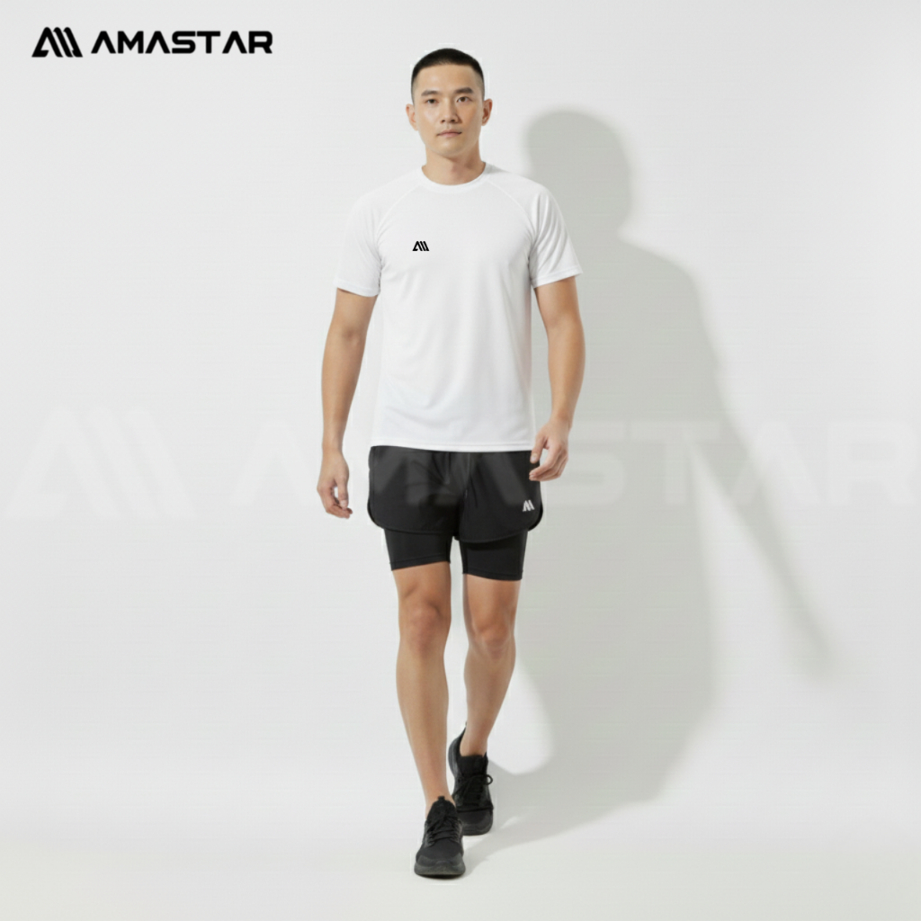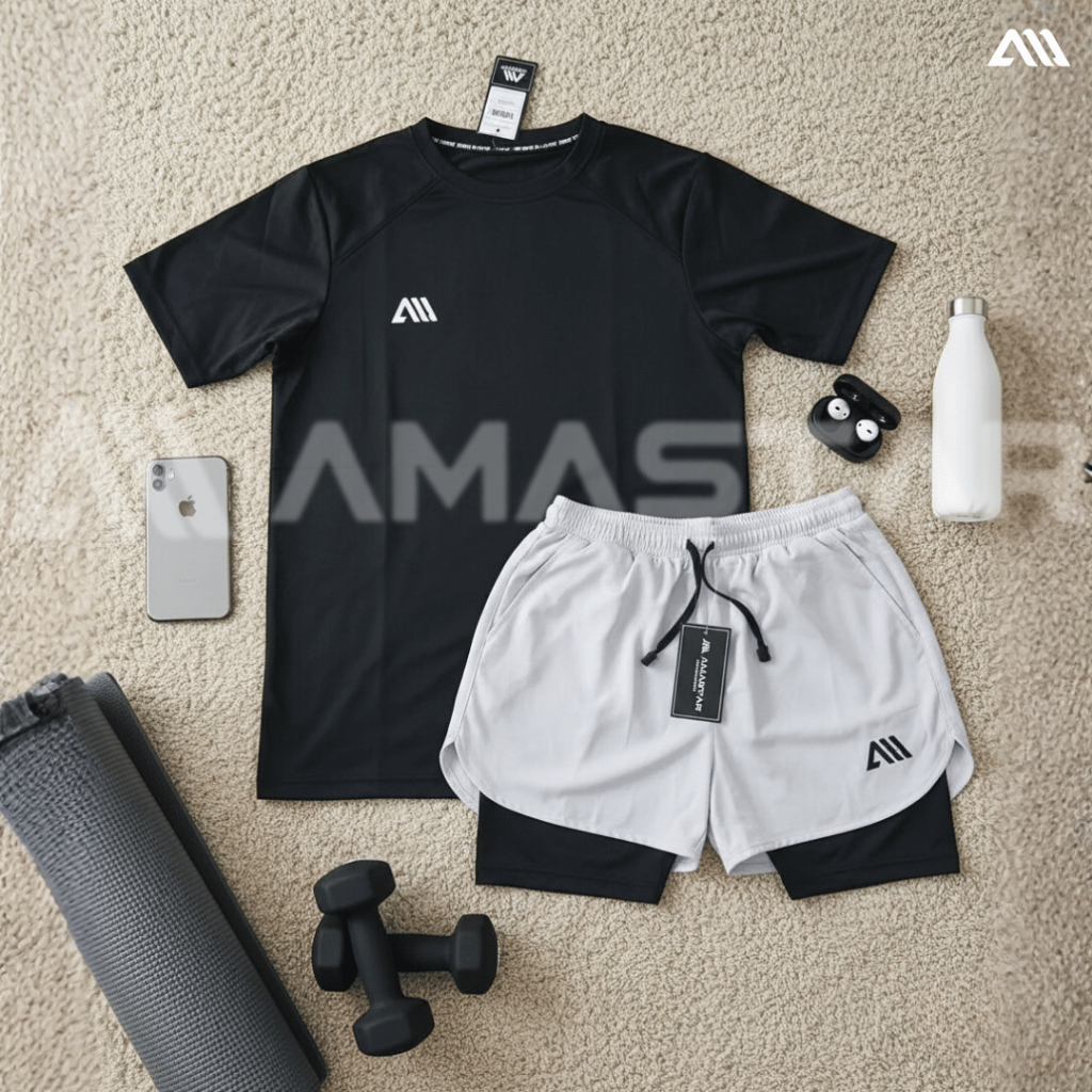 AMASTAR - 2 PCS Setelan Jersey Baju Dan Celana Double short Olahraga Voli Running futsal Fitness