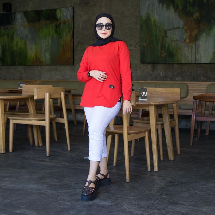 Xvlore Kaos Cewek/ Atasan Lengan Panjang Bawahan Oval Polos Real Pict Nyaman Katun Combed Premium (A.1) Distro Wanita Ob