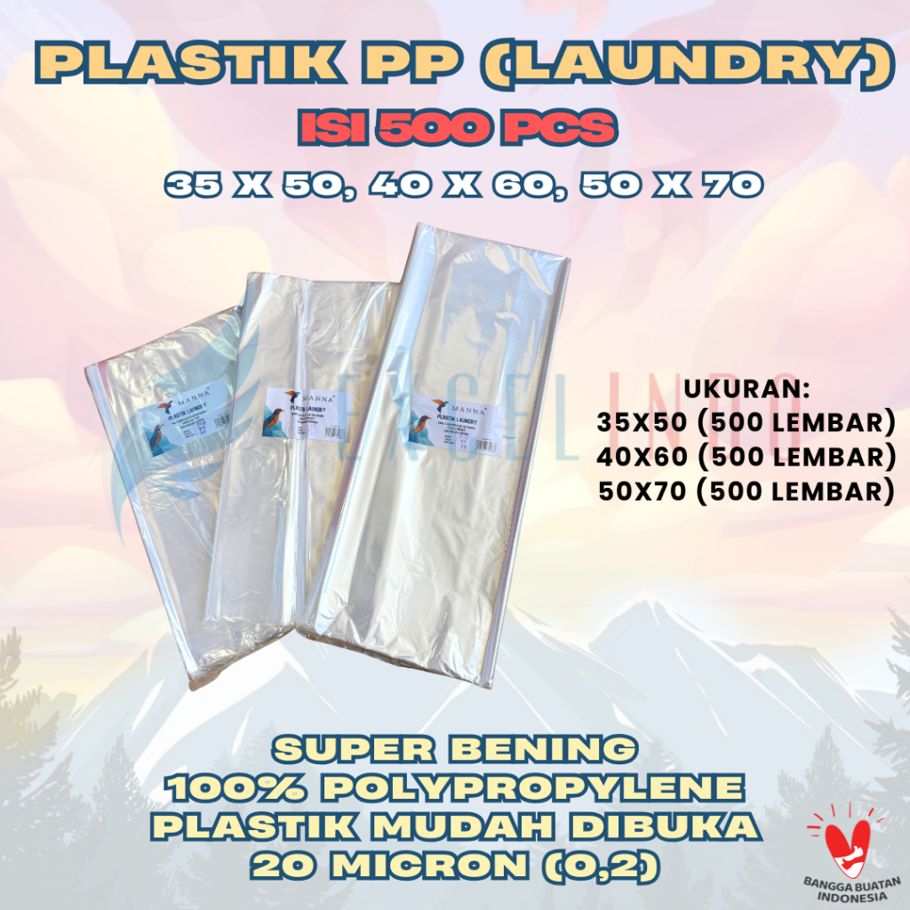 (Paket 500 pcs) MANNA Plastik Laundry PP BENING DAN TIPIS 0.2 ukuran 40x60