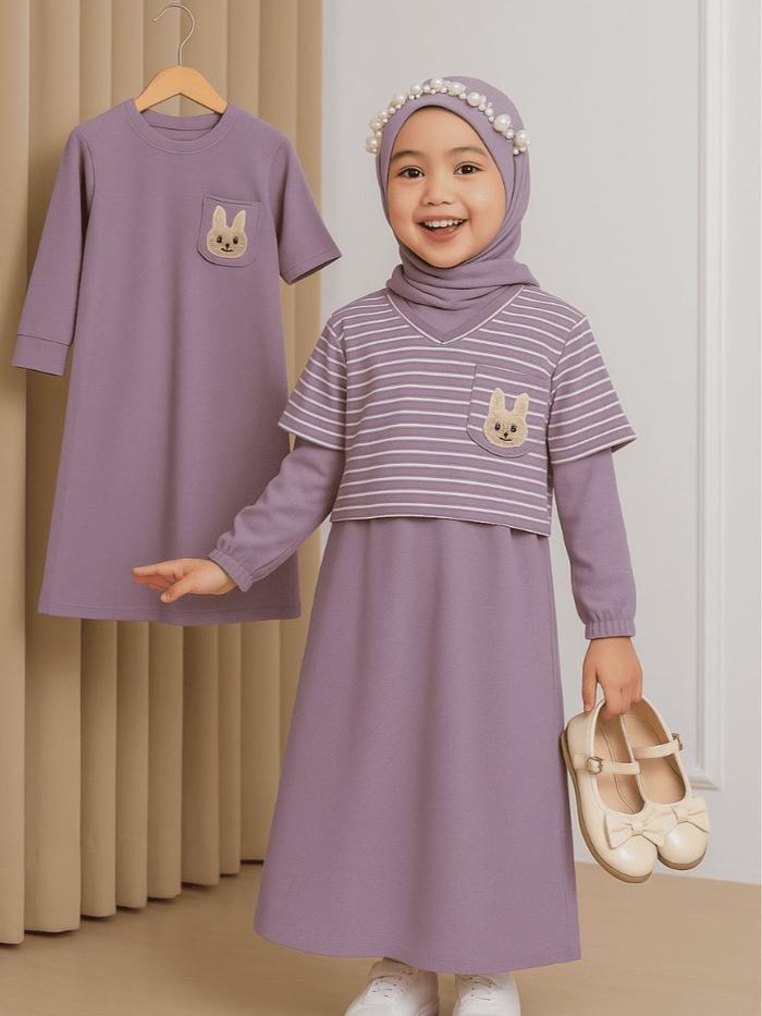 Gamis Rompi Anak Perempuan Karakter Kartun Viral Syari Muslim Lebaran - Usia 1-12 Tahun Nyaman Kombinasi Lembut Dress -