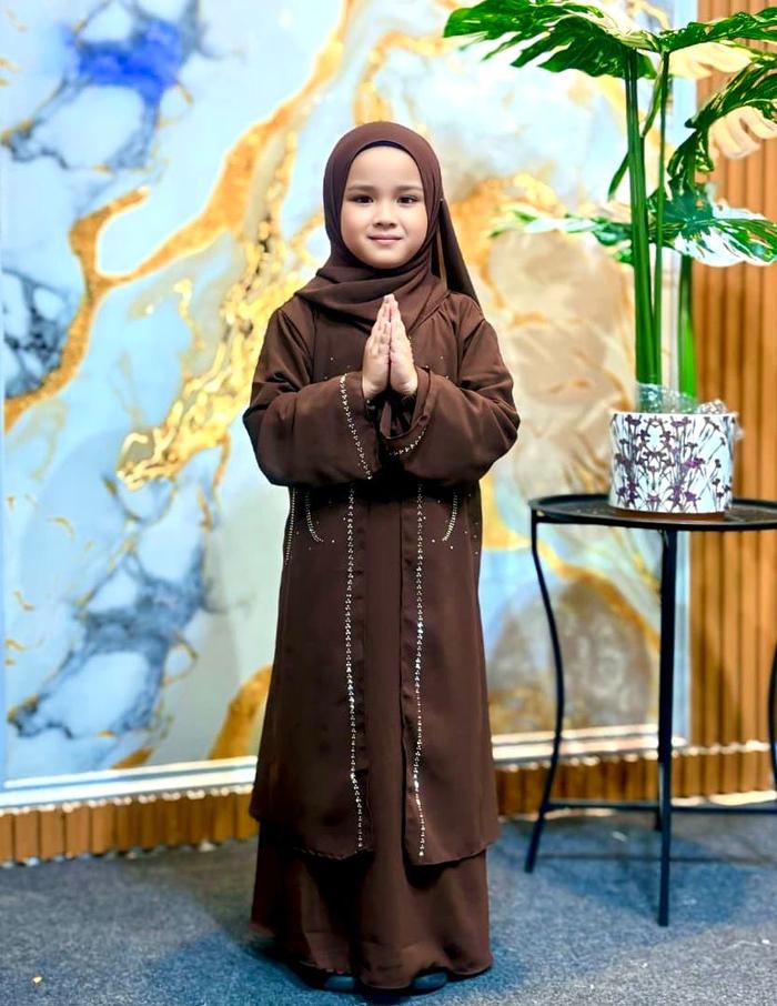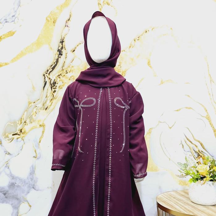 Gamis Abaya Ceruty Babydoll Free Hijab Anak Perempuan By Nanokidss - Burgundy, 4-5 Tahun (No. 1-4)