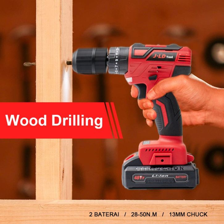 TERMURAH BOR BRUSHLESS 48 VOLT JLD CORDLESS DRILL 13 MM PAKET LENGKAP TOOLBOX
