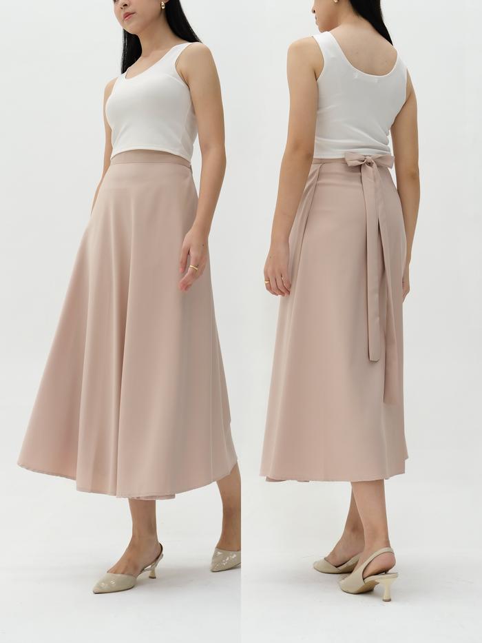 Rok Flare Maxi Wanita | Himari Skirt | Hulm - Cream, Midi 70 Cm