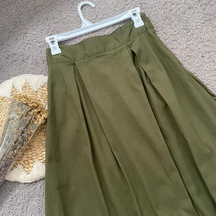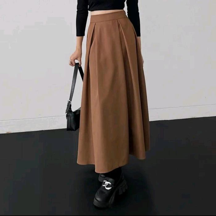 Rok Lunar Flare Skirt - Rok Cotton Twil Korean Skirt Style - Rok Terbaru - Rok Cream, M-L Pjg 88Cm