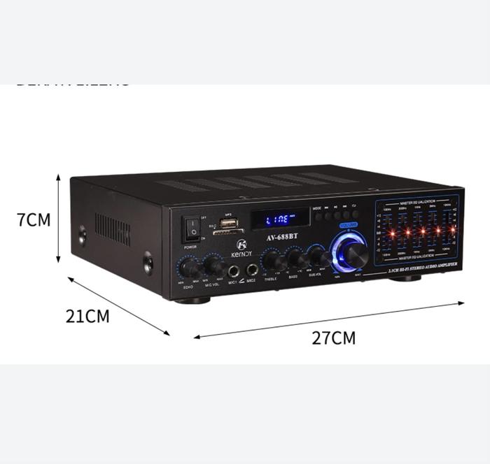 Amplifier Kerndy Bluetooth 5.3 Audio Eq Av-688Bt Channel 2.1 Full Bass Subwofer Amplifier Karaoke Home Theater Av-688Bt