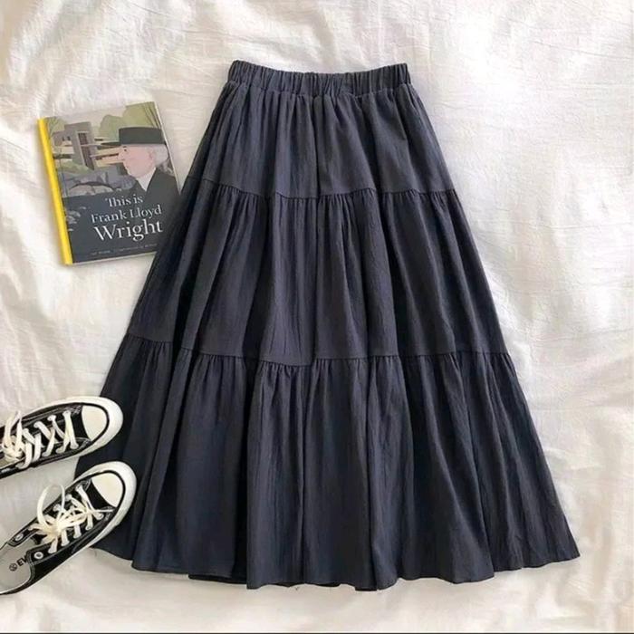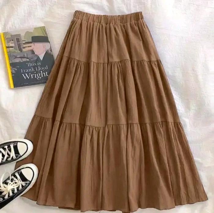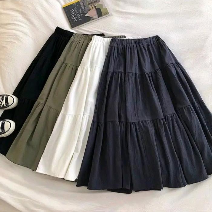 Rok Skirt Susun Rempel Serut Bahan Crinkle Airflow Best Seller Rok Panjang Muslimah Wanita Muslim Bawahan Maxi Casual -