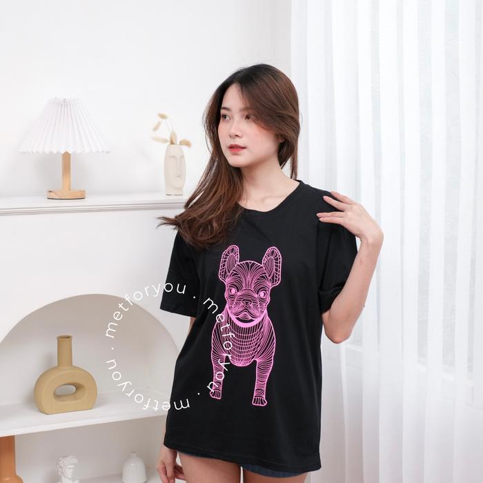 Metforyou Kaos Wanita Oversize - Graphic Dog |Big Ra-Dog Off Black - White, Allsize Ld 90 Cm