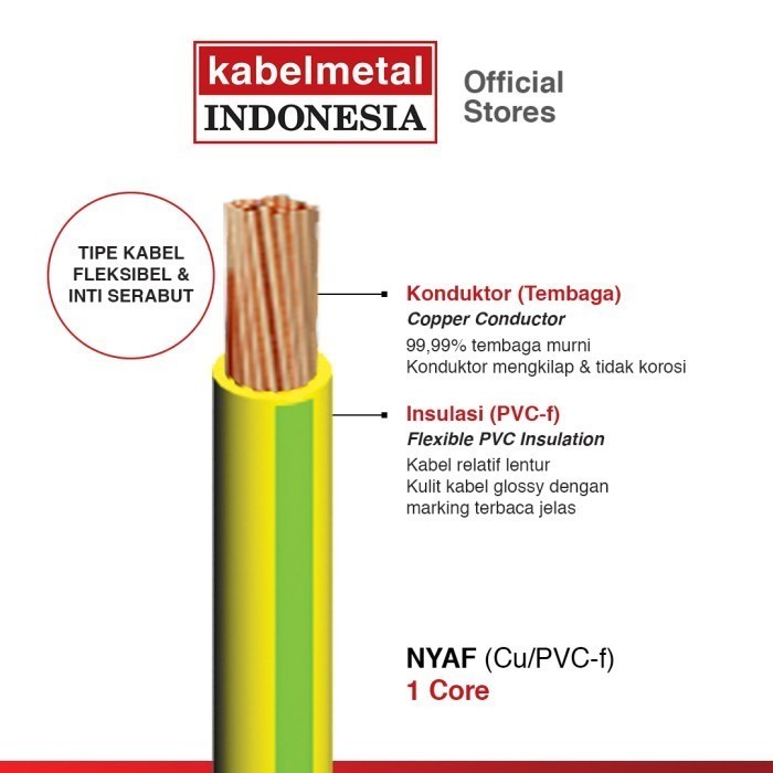 Kabel NYAF 1 mm 100 Meter Roll kabelmetal Serabut Tembaga Fleksibel PVC Panel Listrik KMI SNI