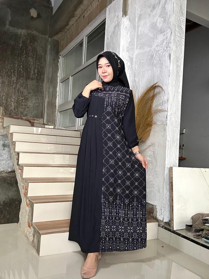 Hwf - Gamis Tsabina. Gamis Mute Swarovsky. Cringkle Motif - Tsabina Hitam