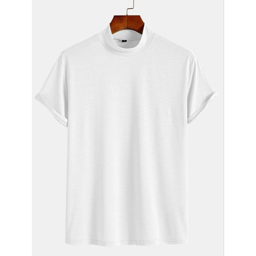 FLASH SALE Kaos Turtleneck Polos Unisex Lengan PendekCasual Basic Putih