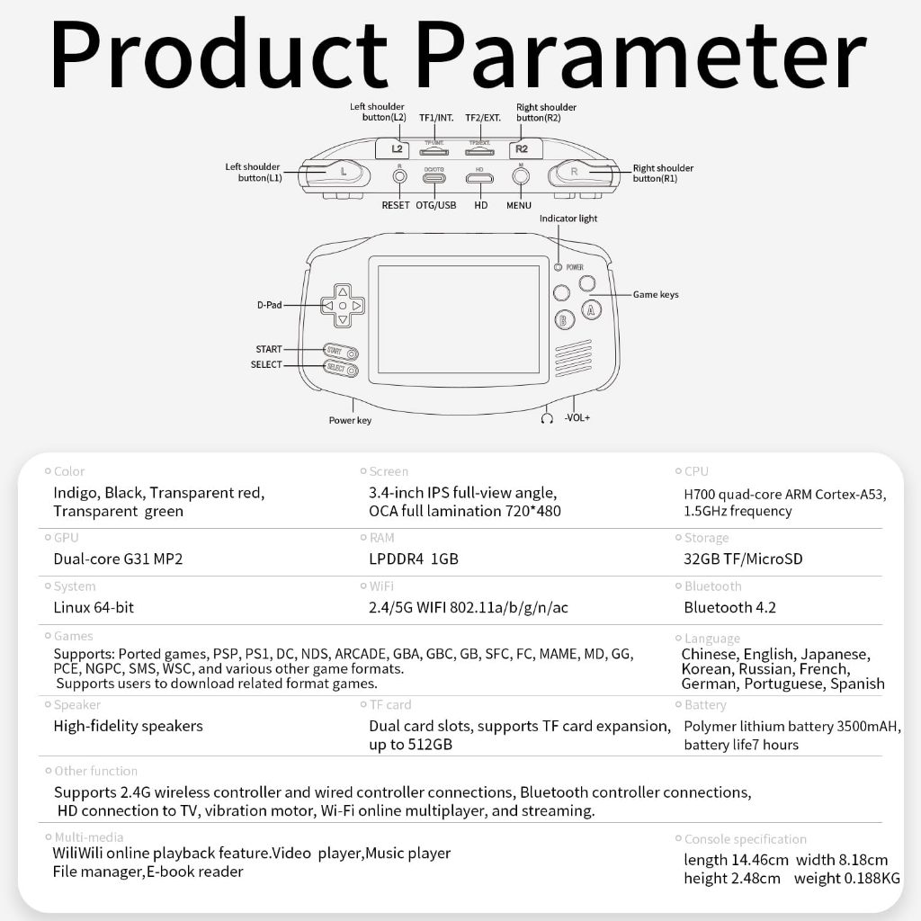 Anbernic RG34XX Retro Handheld Video Game Console Classic Portable PS1 PSP GBA