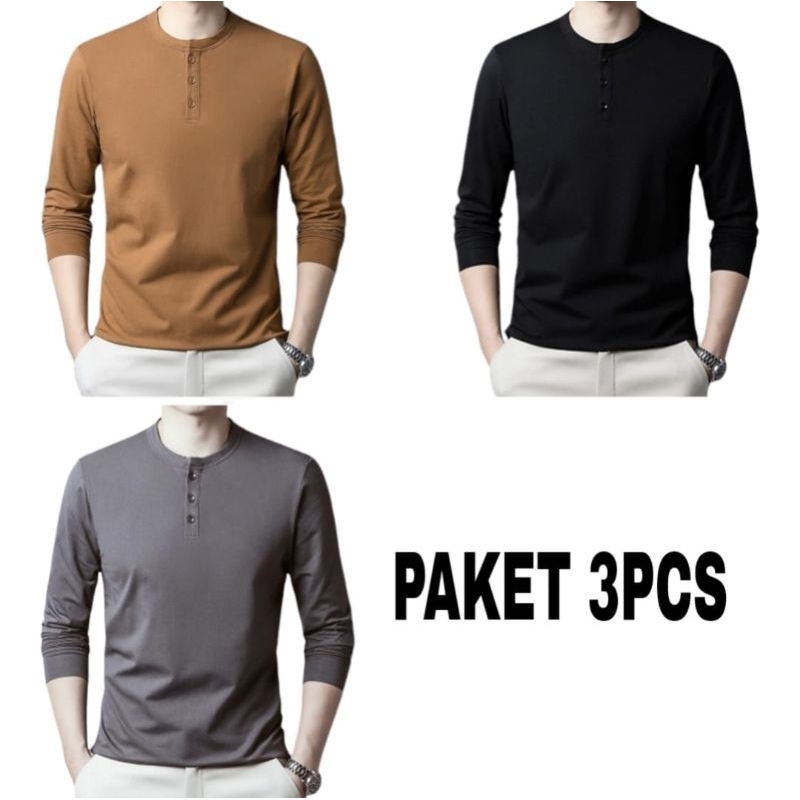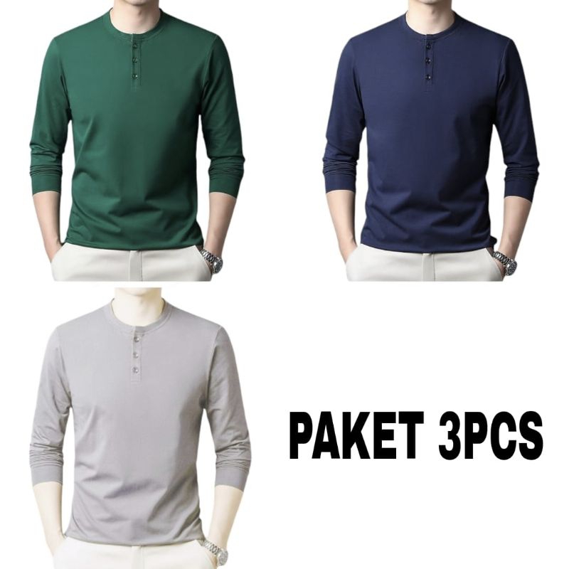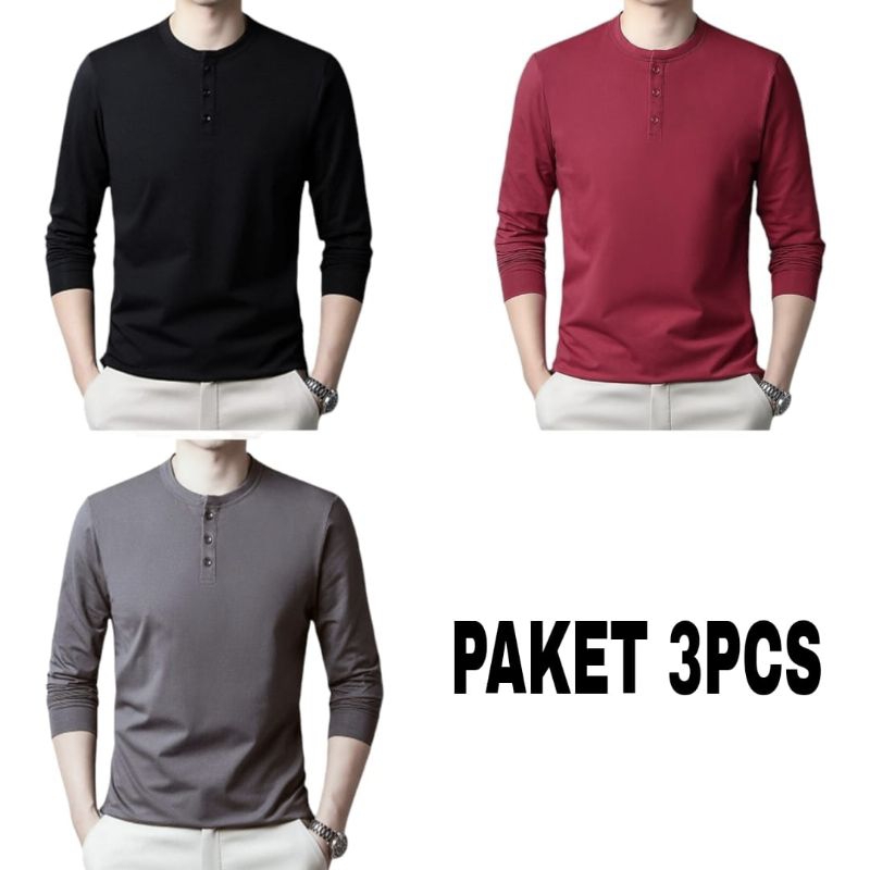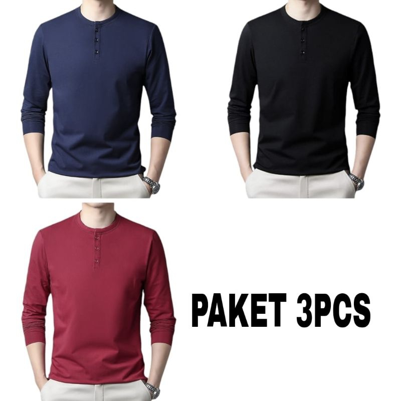 FLASH SALE PROMO baju atasan pria lengan panjang paket 3 pcs