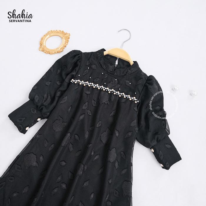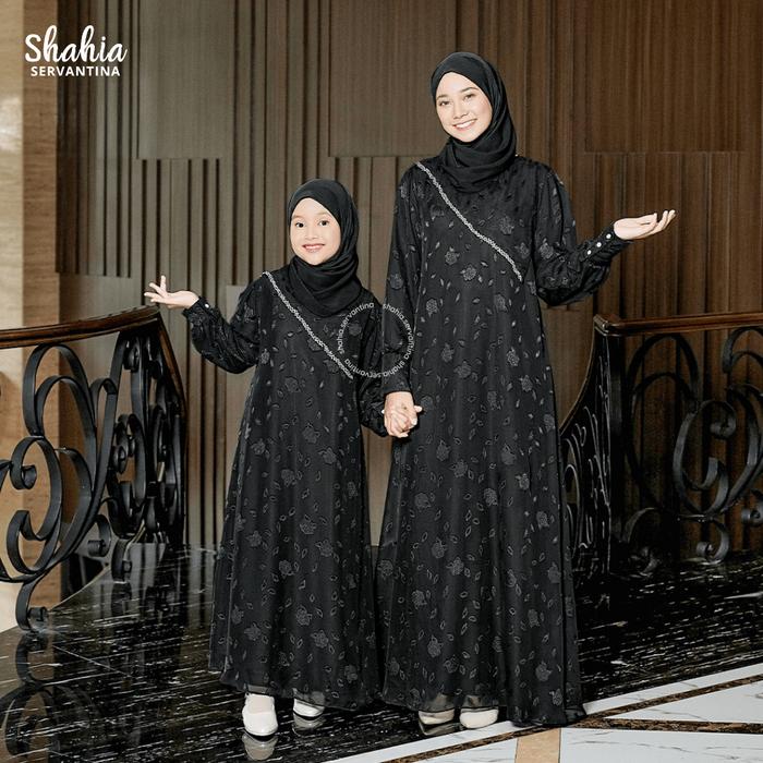 Shahia Servantina - Dinara Sarimbit Famset Lebaran Family Set Gamis Couple Ibu Dan Anak Baju Muslim - Dinara 1 Black, Ki