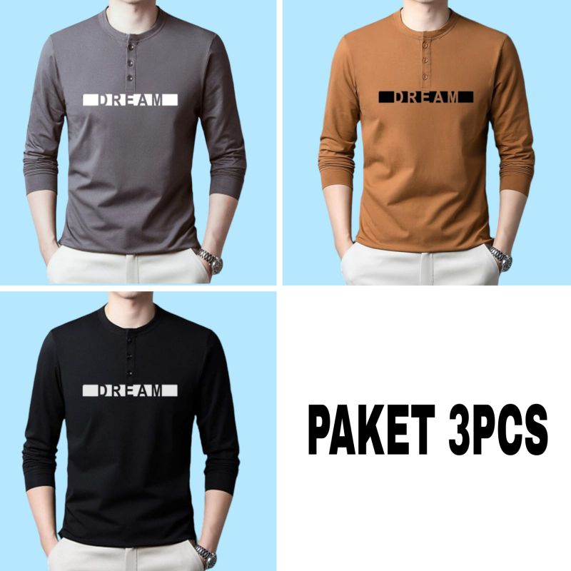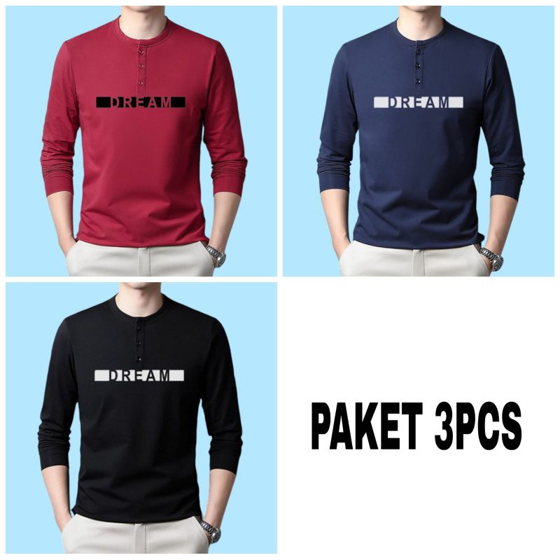 FLASH SALE kaos kancing pria lengan panjang isi 3 pcs terbaru