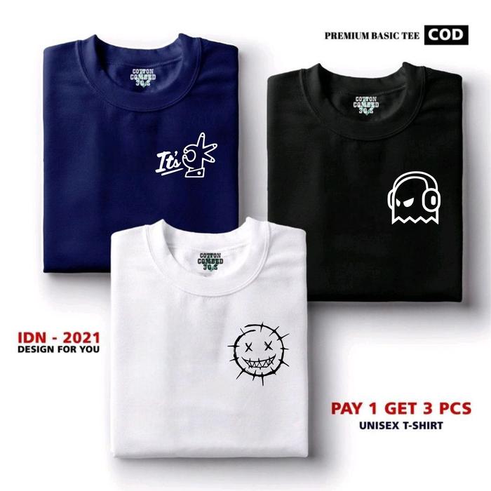 Promo Beli 1 Dapat 3 Pcs Kaos Distro (Bahan Tebal) 100 PERSEN Cotton Combed 30S Kaos Pria/Wanita Kaos Premium Pria Kaos Baru B