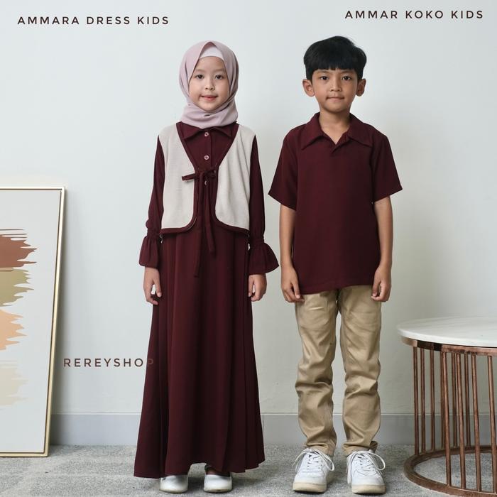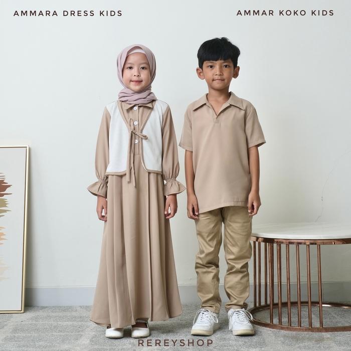 Rereyshop Ammar Ammara Kids Koko Anak Laki Laki / Dress Anak Perempuansarimbit Bahan Premium Nyaman - Koko Denim, L