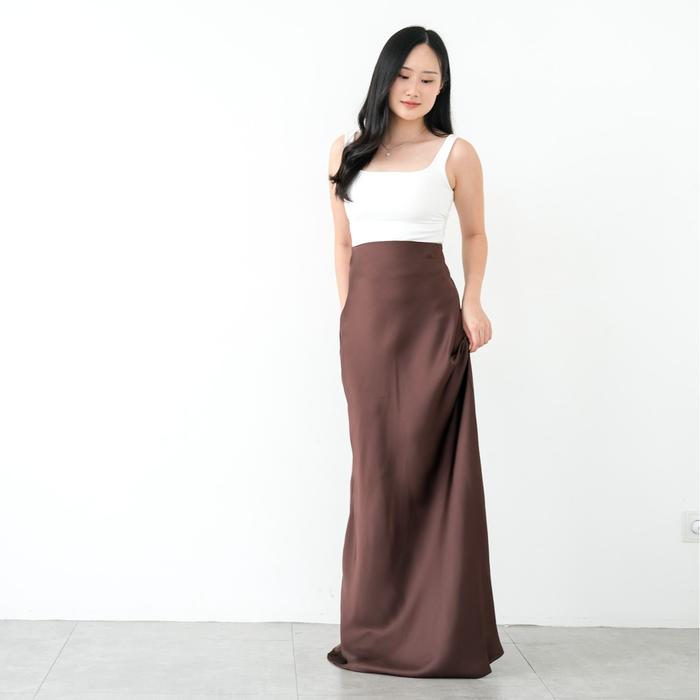 [Jenn&Rose] Hilda Maxi Satin Silk Skirt | Rok Satin 110Cm - Almond, S