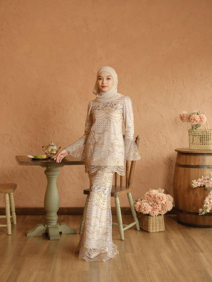 (Akita-Mirabella Raya Series) Oneset Dengan Rok & Dress Dewasa, Dress Anak Baju Lebaran, Formal, Material Silk & Lace Mu