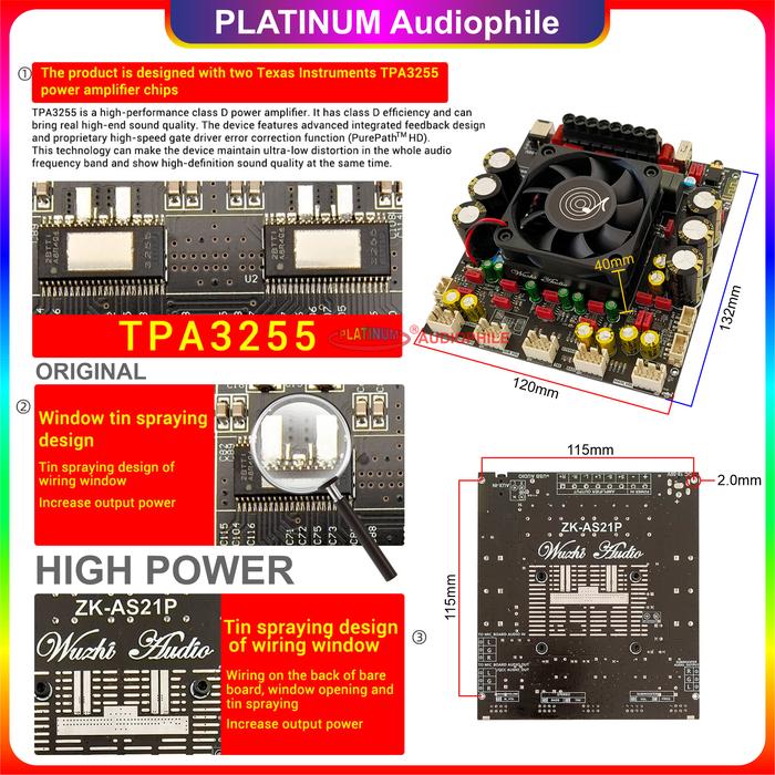 Tpa3255 Amplifier Class D 2.1Ch Bluetooth 5.1 Stereo + Subwoofer 2X 300W + 600W Original Zk-As21P As21Px - 1. Zk-As21P