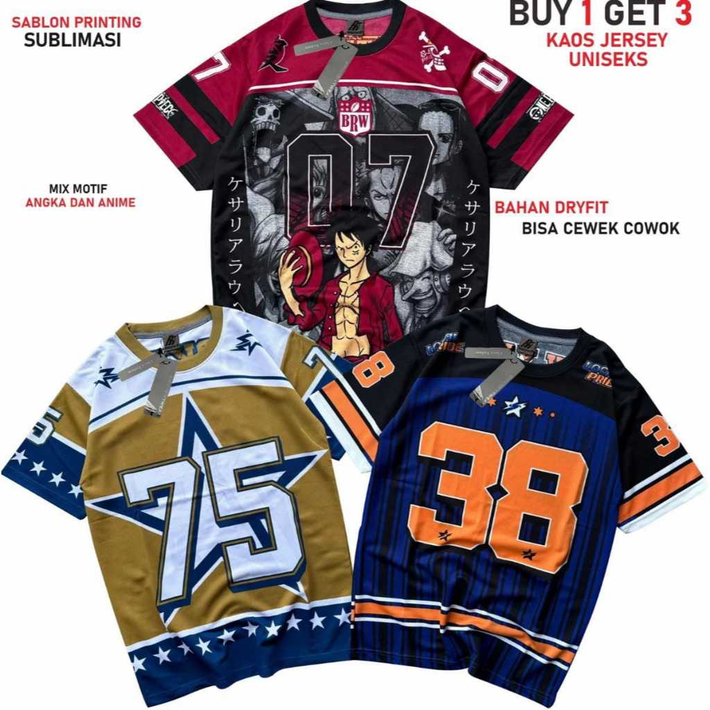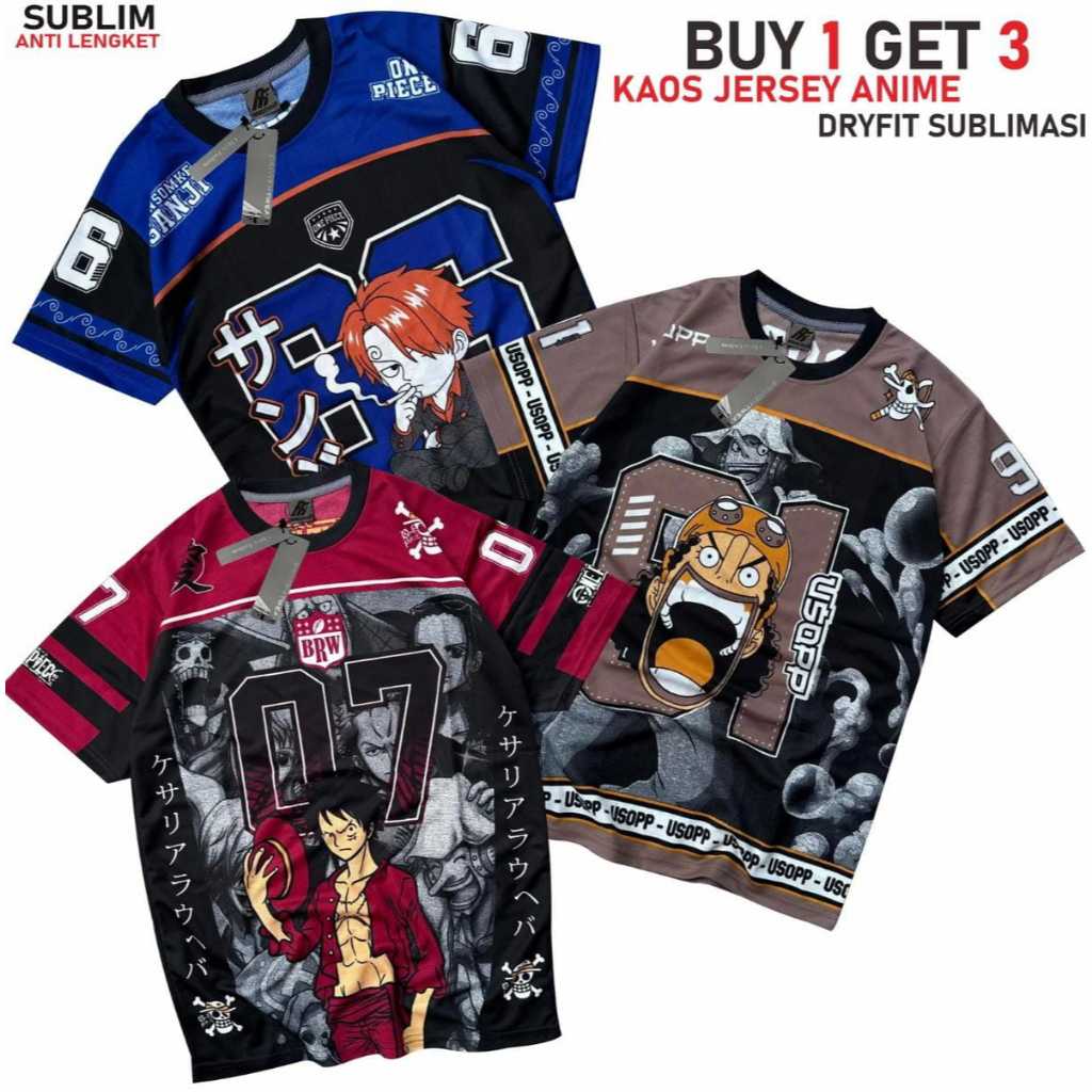 Paket 3 Kaos Jersey Dry Fit Anime Size M L XL XXL Dewasa Printing Sublimasi Anime Sport Anti Lengket