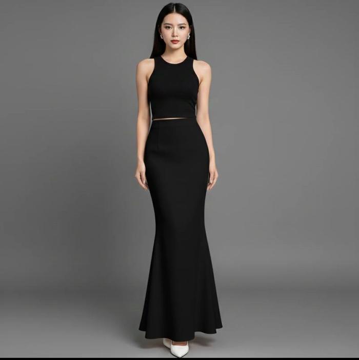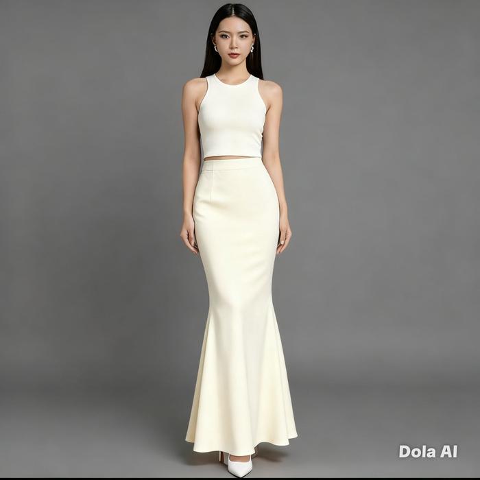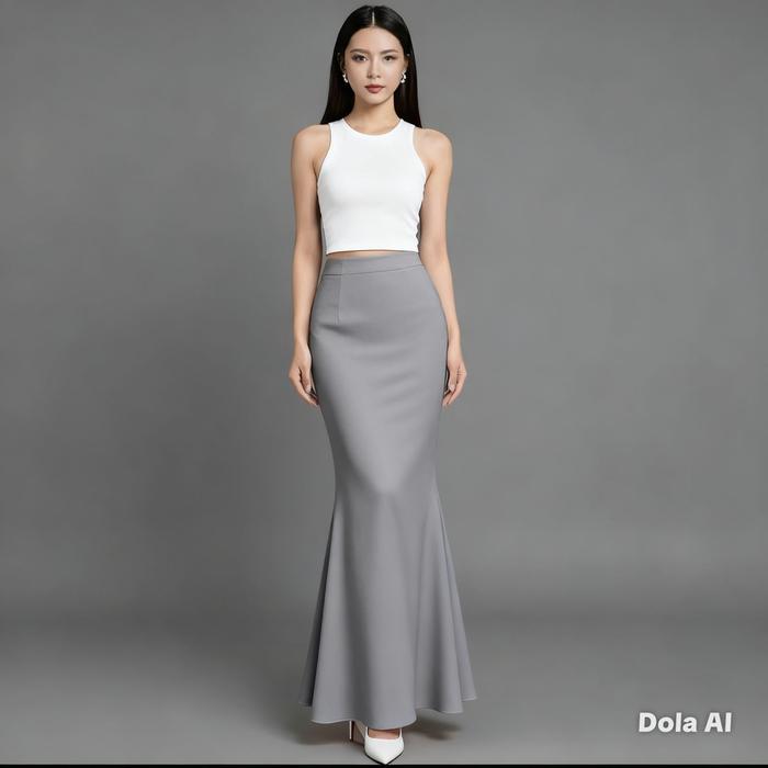 Zy - Rok Duyung Lunar Mermaid Skirt Basic Panjang Wanita Korean Style Bahan Scuba Premium Stretch Flowly Fit Standar Mid