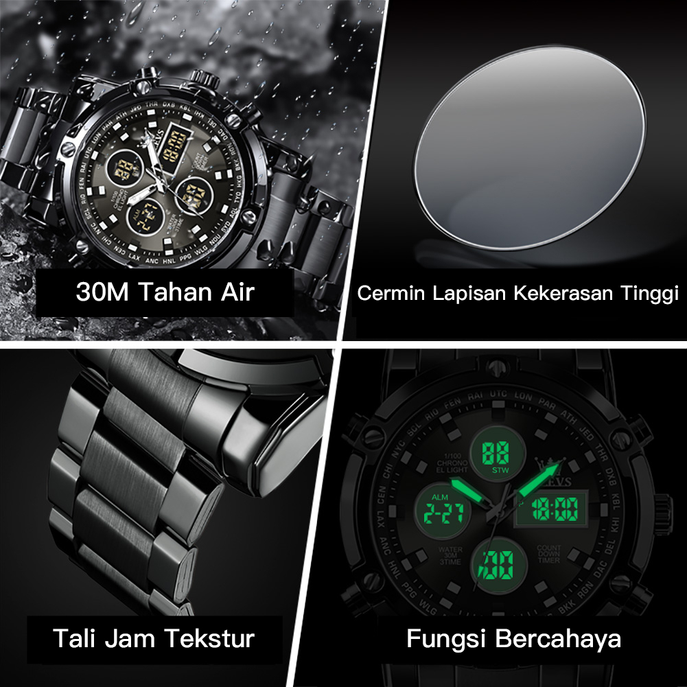 OLEVS Jam Tangan Pria Anti Air Original Multifungsi Luminous Kalender Alarm Analog Cowok Fashion Hitam Men Watch Model 1106