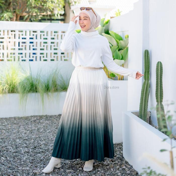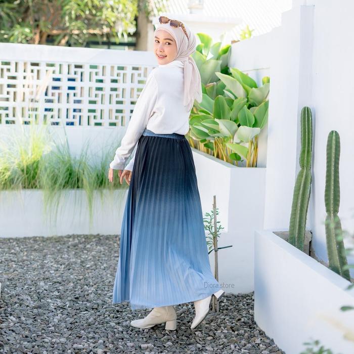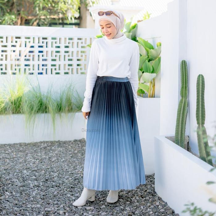Diora Rok Plisket Premium Gradasi Hitam Dewasa Bahan Jatuh Full Karet Pinggang - Biru 1