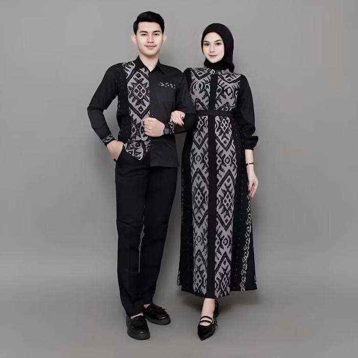 Rayat Tenun Set Couple Tenun New Padma Belvia Black Baju Kondangan Tenun Muslim Panjang Pasangan Sarimbit Keluarga Setel