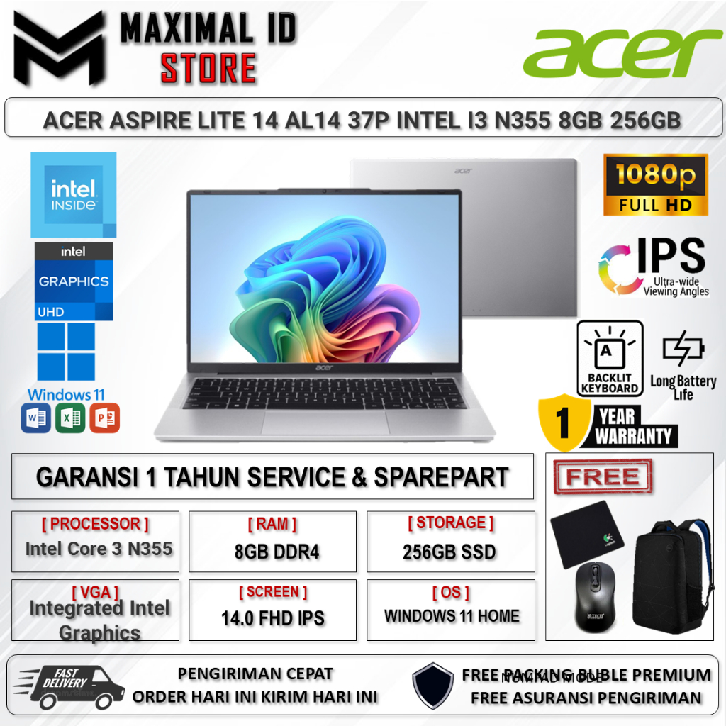Laptop Acer ASPIRE LITE 14 AL14 37P Intel I3 N355 8GB 256GB 14.0 FHD IPS Win11Home Light Silver