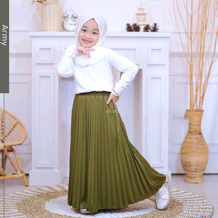 Qi-Qi Art Rok Plisket Anak Umur 4-14 Tahun Premium Fashion - Hitam, S (4-6Th)
