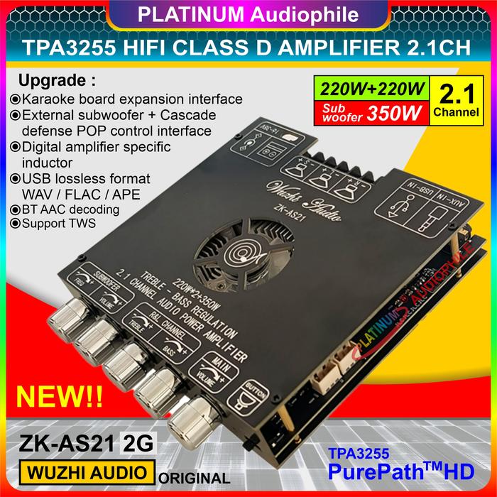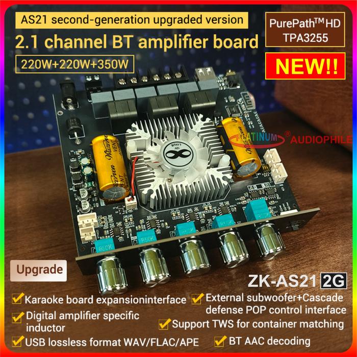 Tpa3255 Amplifier Class D 2.1 Ch Bluetooth 5.1 Stereo + Subwoofer 2X 220W + 350W Original Zk-As21 2G