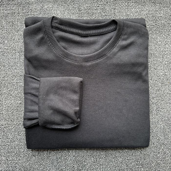 Part Ii Kaos Rib Premium / Kaos Grosir / Kaos Rib Premium Tebal / Kaos Lengan Panjang Termurah Cewek Katun - Black, One