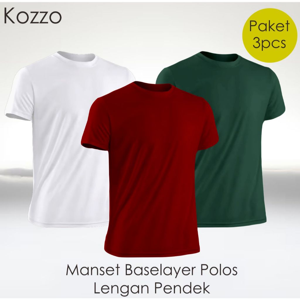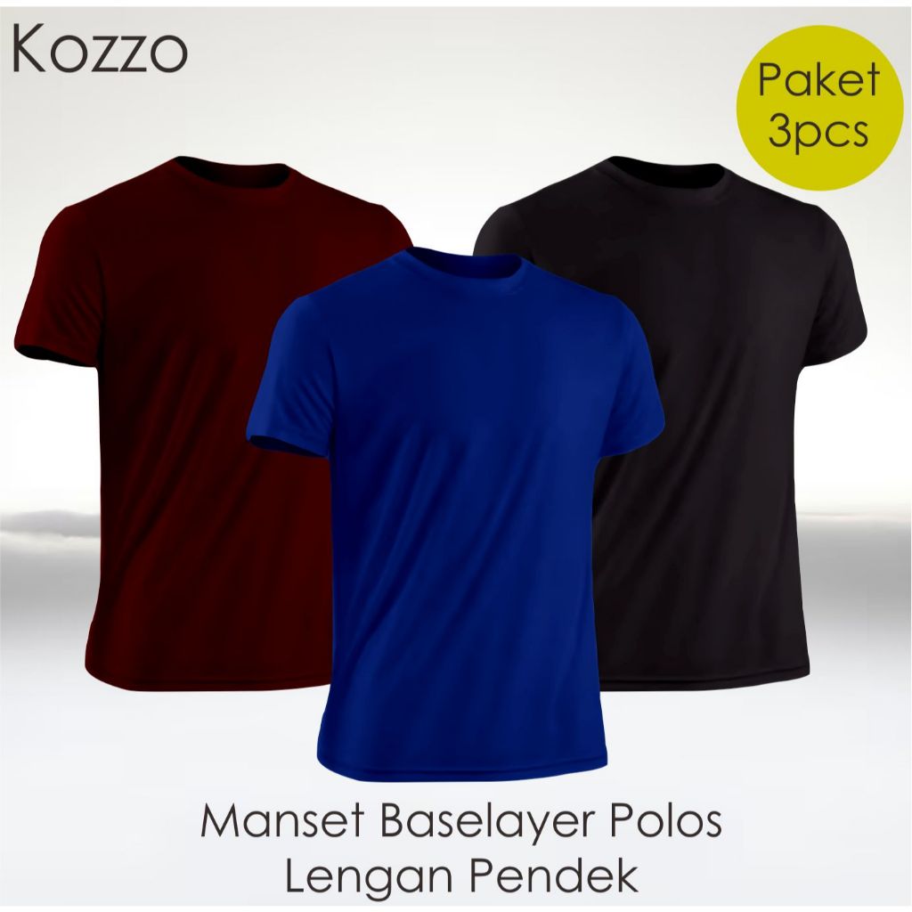 Baselayer Lengan Pendek Paket Hemat 3Pcs Manset Olahraga Polos Futsal Sepeda Bola Volly