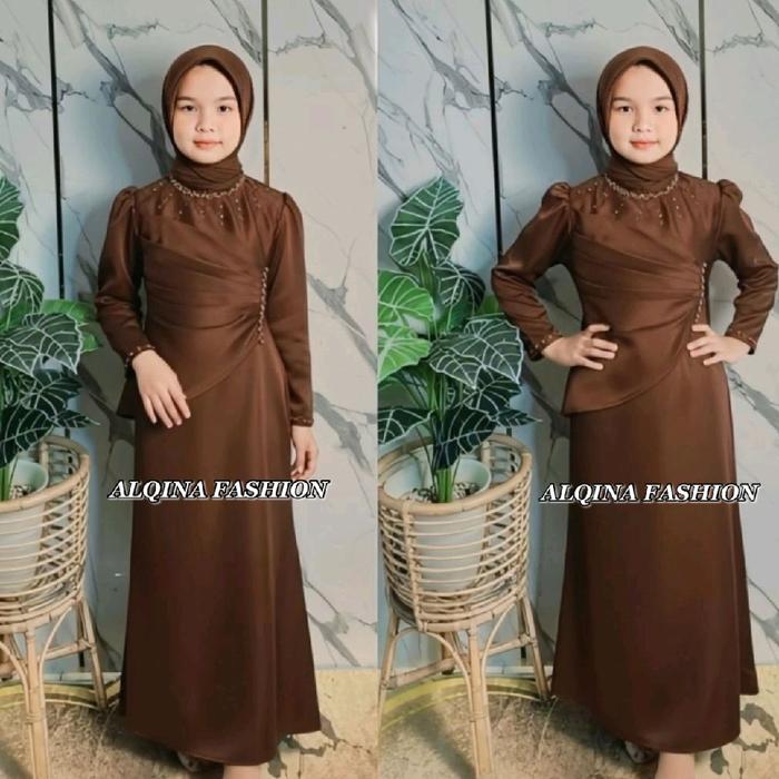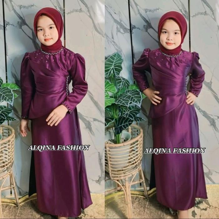 Dress Pesta Anak Perempuan Umur 1-12Tahun Bahan Satin Desain Elegan Dengan Peyet Mutiara Untuk Gaun Kondangan Baju Lebar