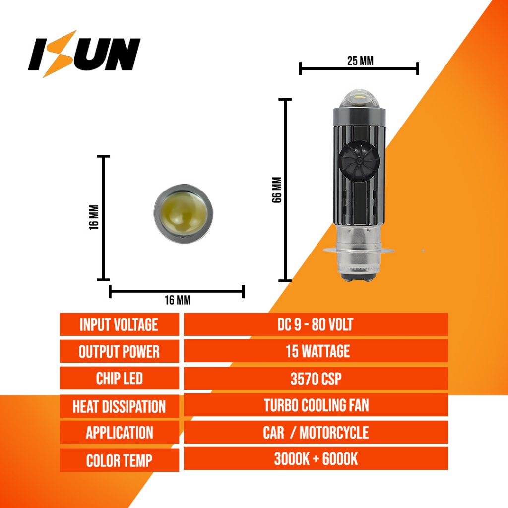 Lampu Motor Led Utama Isun H6 Laser Gun P15D-25 Kipas Demon RGB DC9-80V/15W