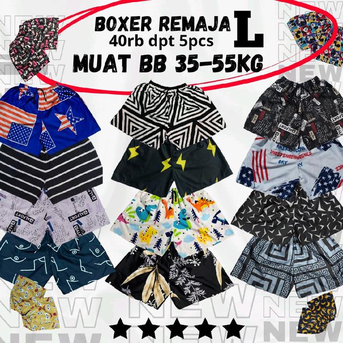 Paket Hemat 3,5,10,12Pc Boxer Fit To L Bb 35-55Kg, Boxer Viral Celana Pendek Harian - Motif Random, 3Pcs Size L