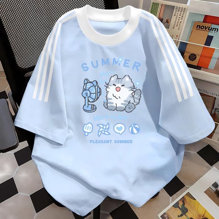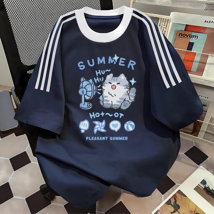Street Premium T-Shirt Lengan Pendek Kaos Oversize Tiga Garis Korea Premium 100 PERSEN Katun | Pleasant Summer Style Pria Wani