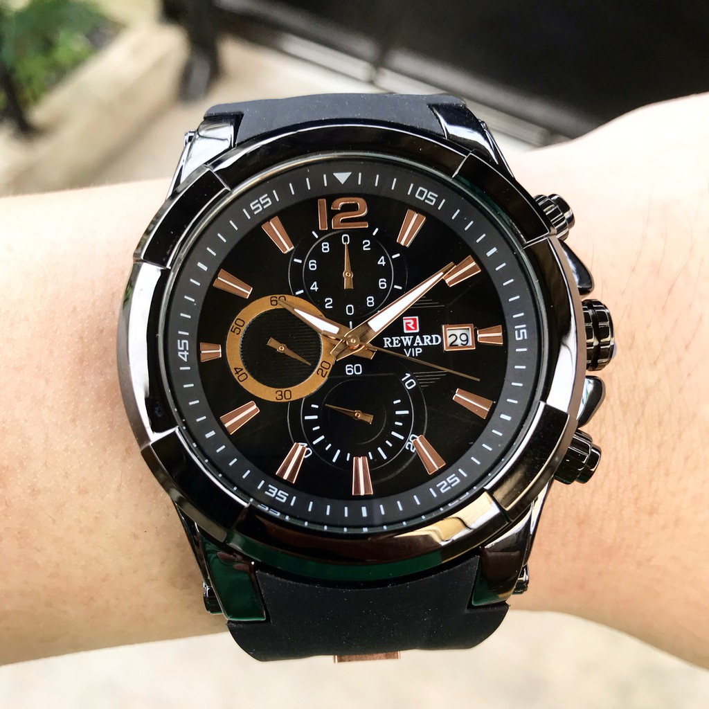 () Jam Tangan Pria Original REWARD Bayonet Black Hitam Rubber Karet SIlikon Analog Chrono Aktif