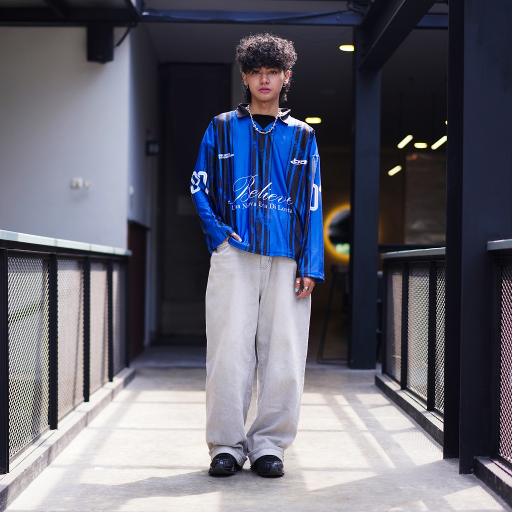 BELIEVEDIAGEMSAE - Oversized Jersey Boxy Longsleeve Nerazuri Blue And Black