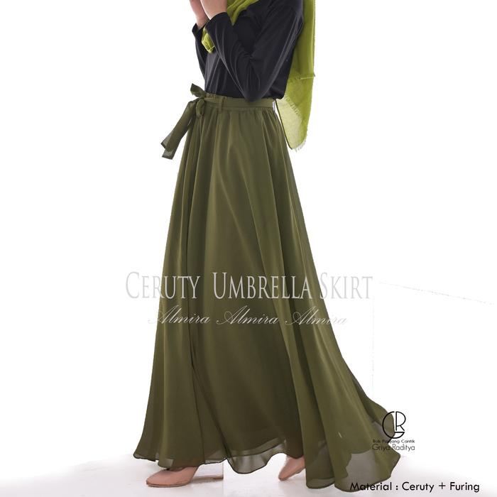 Rok Panjang Wanita Payung Muslimah Sifon Chiffon Ceruti Umbrella Skirt Bawahan Muslim Maxi Griyaraditya Almira Pinggang