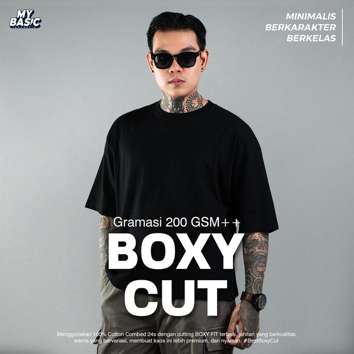 Mybasic - Boxy Crop T-Shirt Kaos Boxy Fit With Cotton Combed 24S Dengan 200 Gsm ++ - Boxycut 210Gsm - Hitam, Size M - Bo