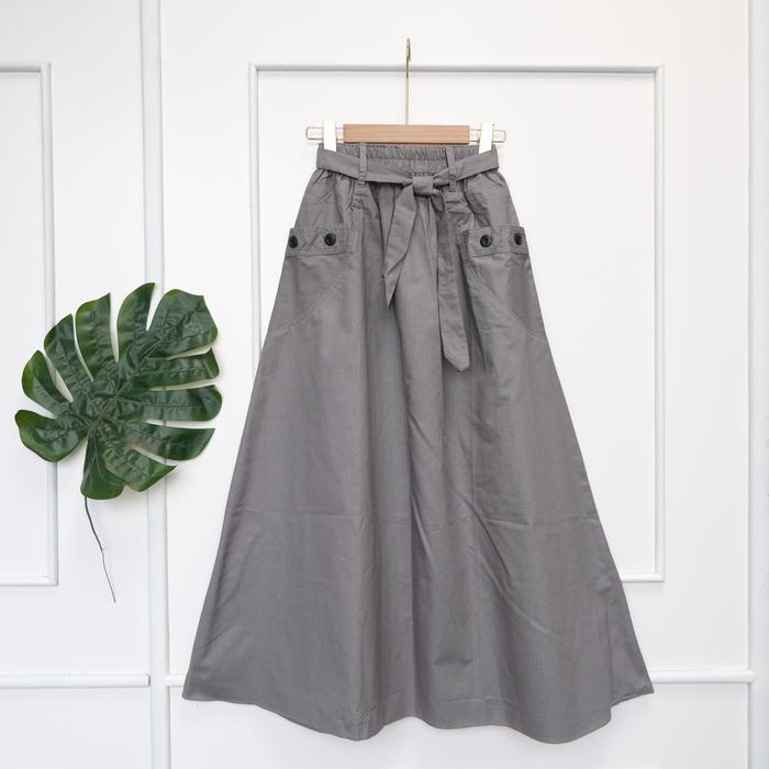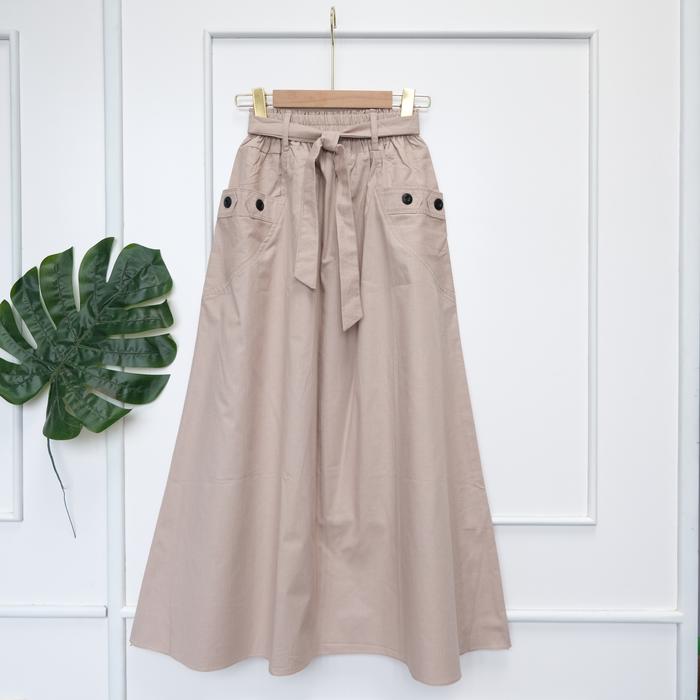 Taylor Rok Polos Wanita Panjang Cutting Bawah Lebar Variasi Kancing Bahan Cotton Sigaret - Cream